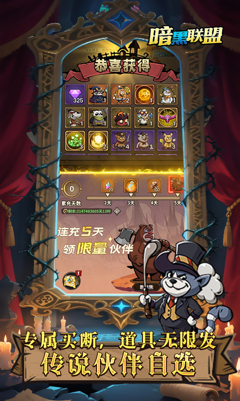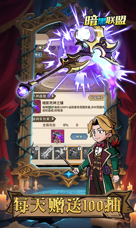 1、上线福利礼包领取魔晶球*100,魔法券*100,伙伴券*100,伙伴-暗黑史莱姆